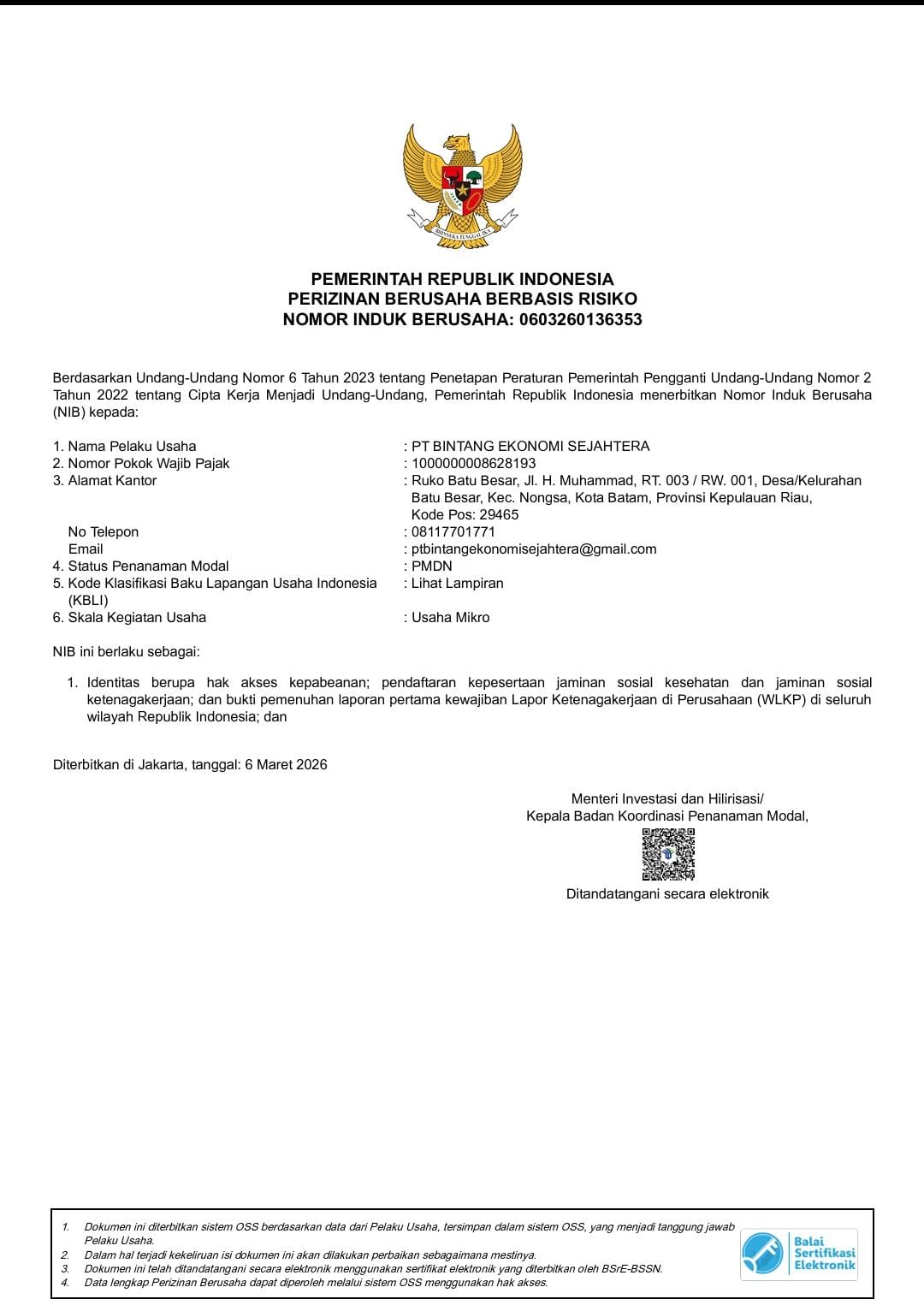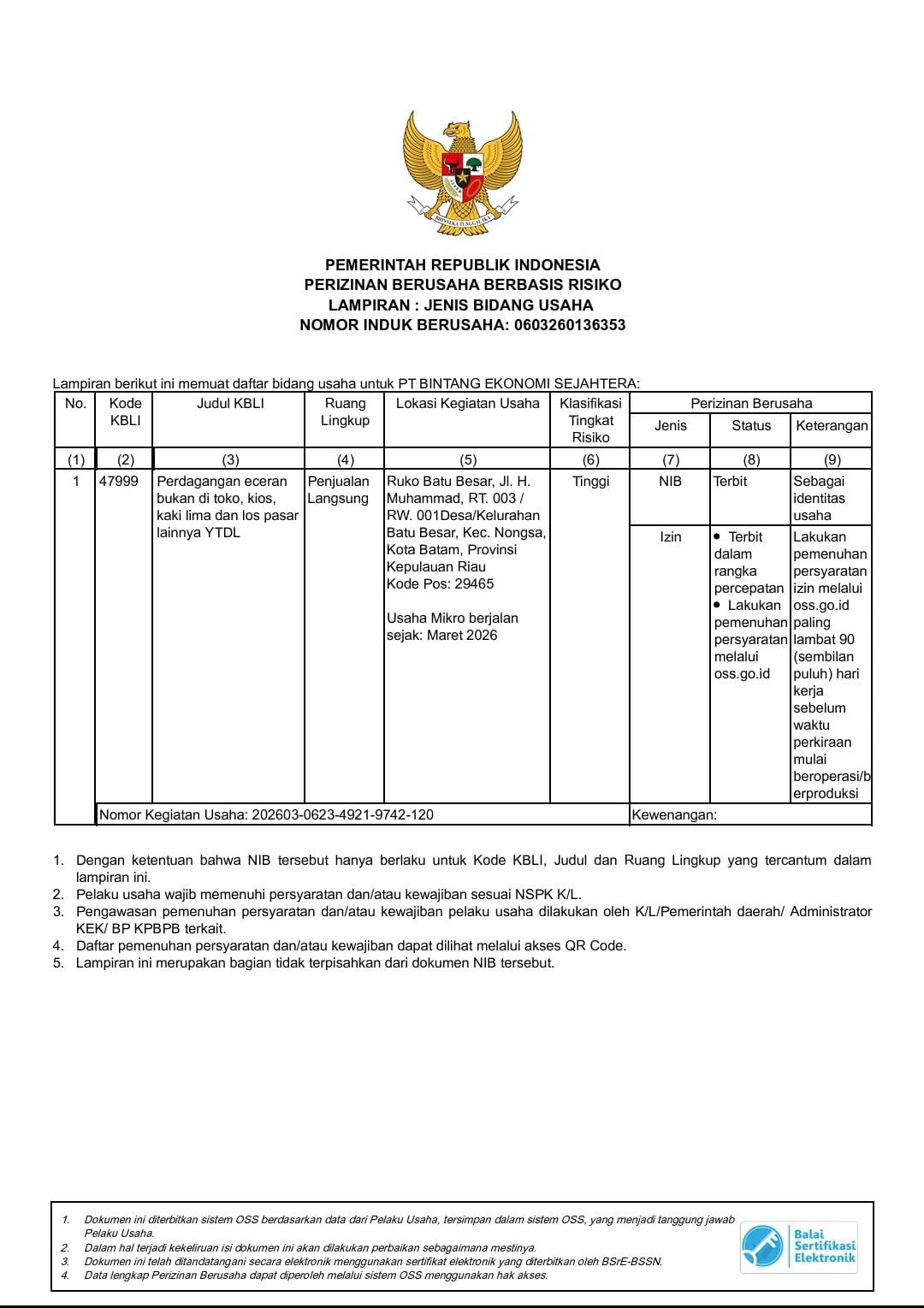 PT. BINTANG EKONOMI SEJAHTERA